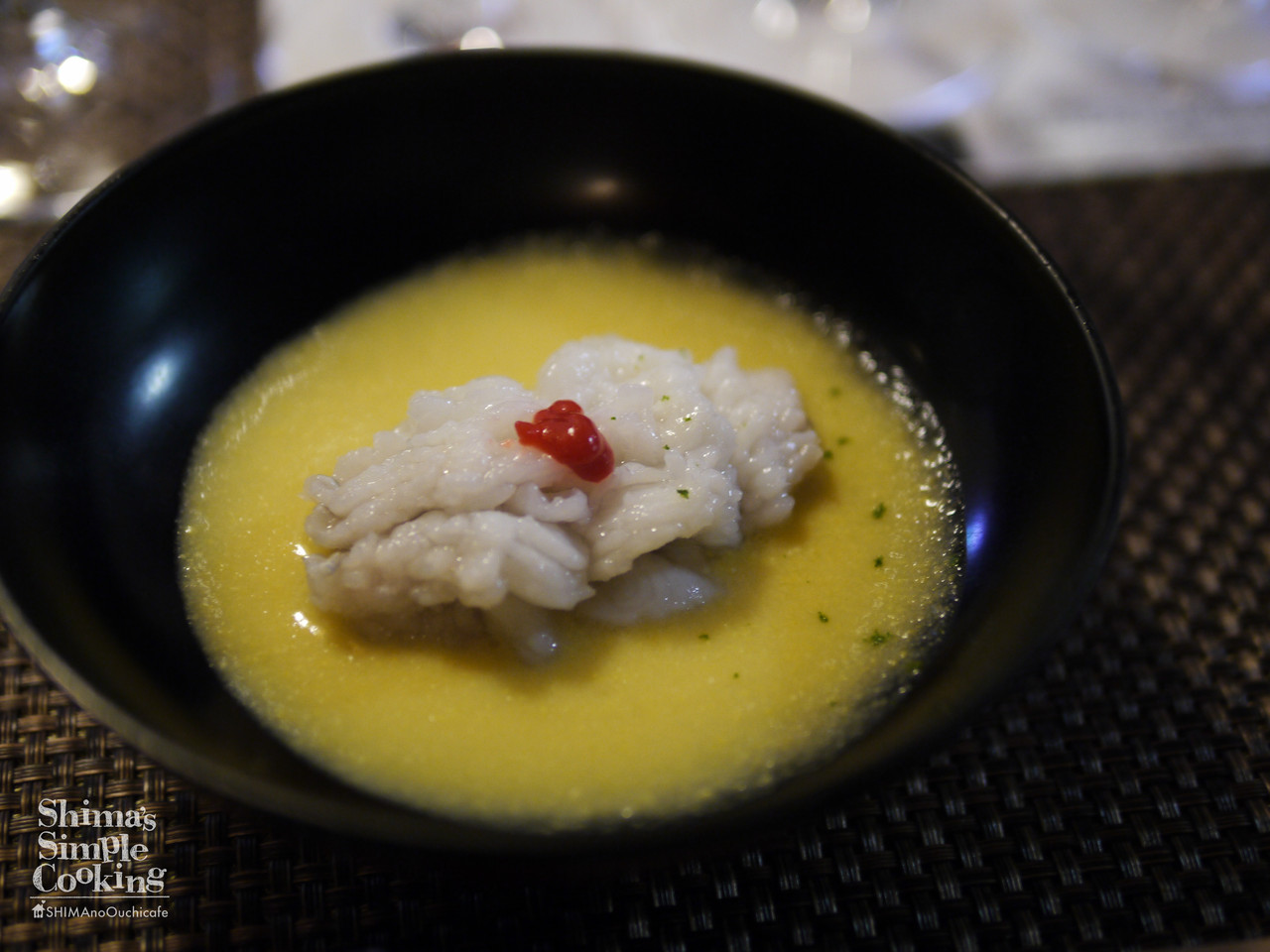 甘いトウモロコシのすり流し 鱧、柚子の香りが印象的な1皿