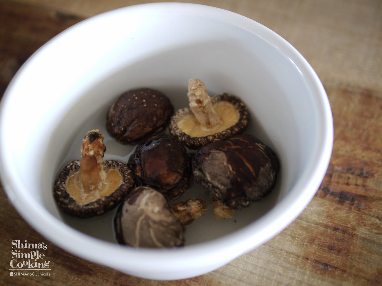 1、乾しいたけは水200ccで戻し、軸の固い部分だけ取り除き