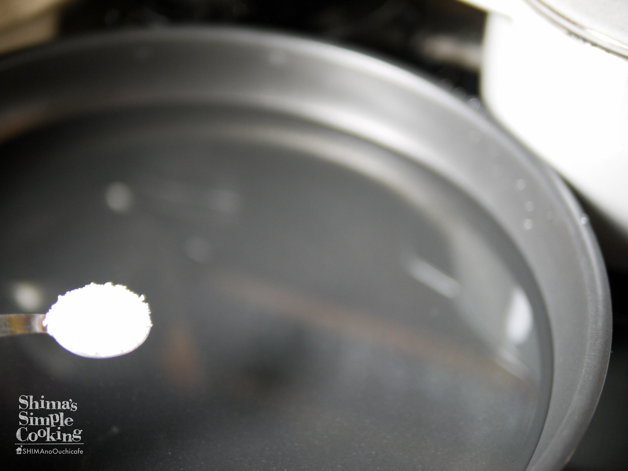 ・鍋に水、塩を入れ火にかけ沸騰させます。