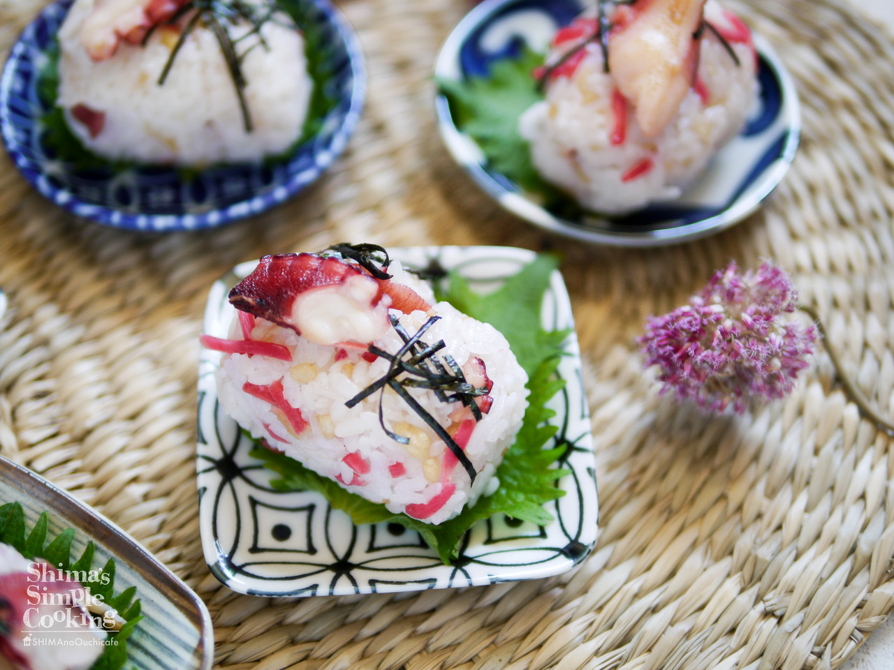 タコと紅生姜の天むす