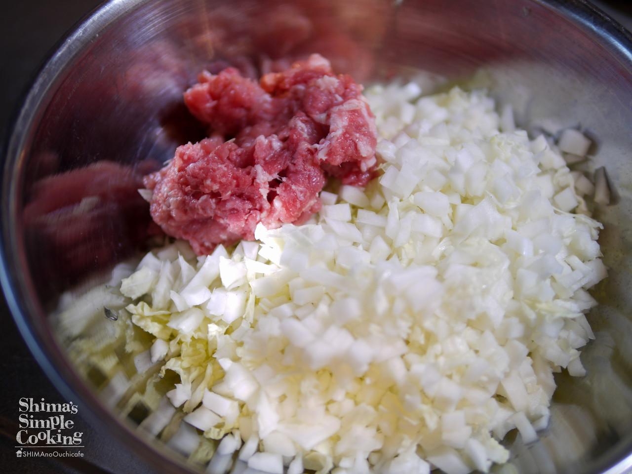 1、白菜と豚薄切り肉は細かく刻んでおく。