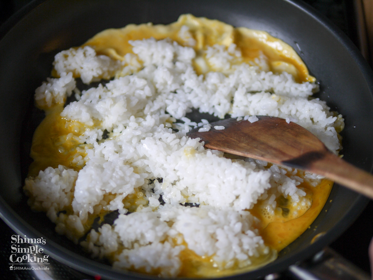 そして、そのご飯を卵でコーティング。