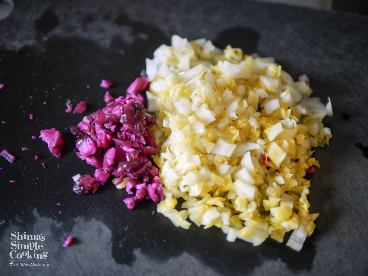 1、お漬物はみじん切りにします。