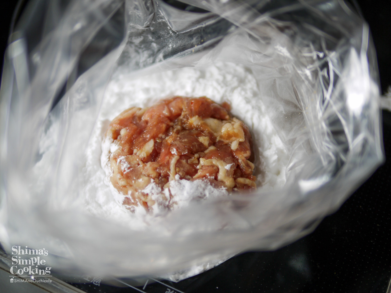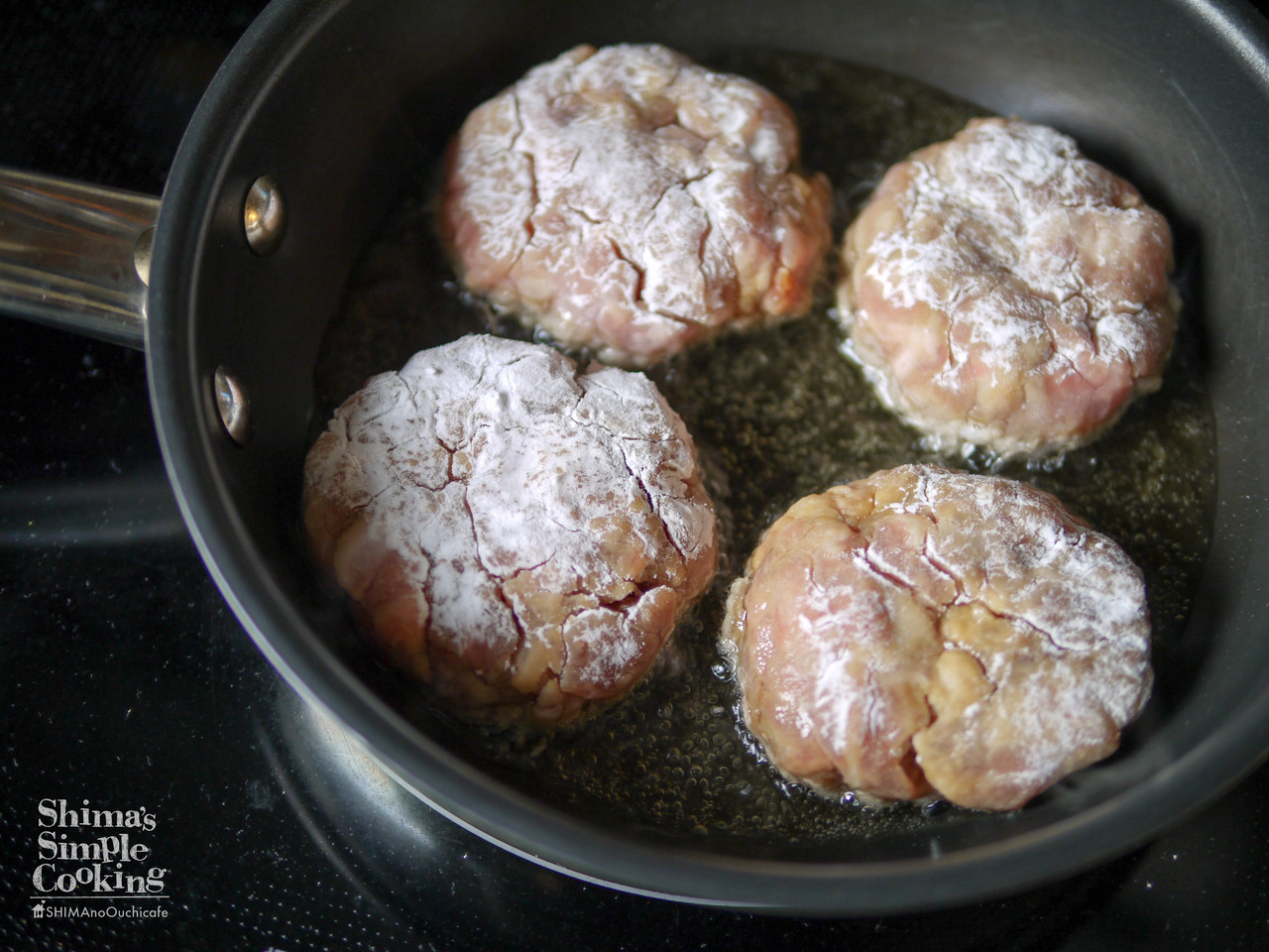 お買い得な豚コマ活用で、味付け一でできる竜田バーグを