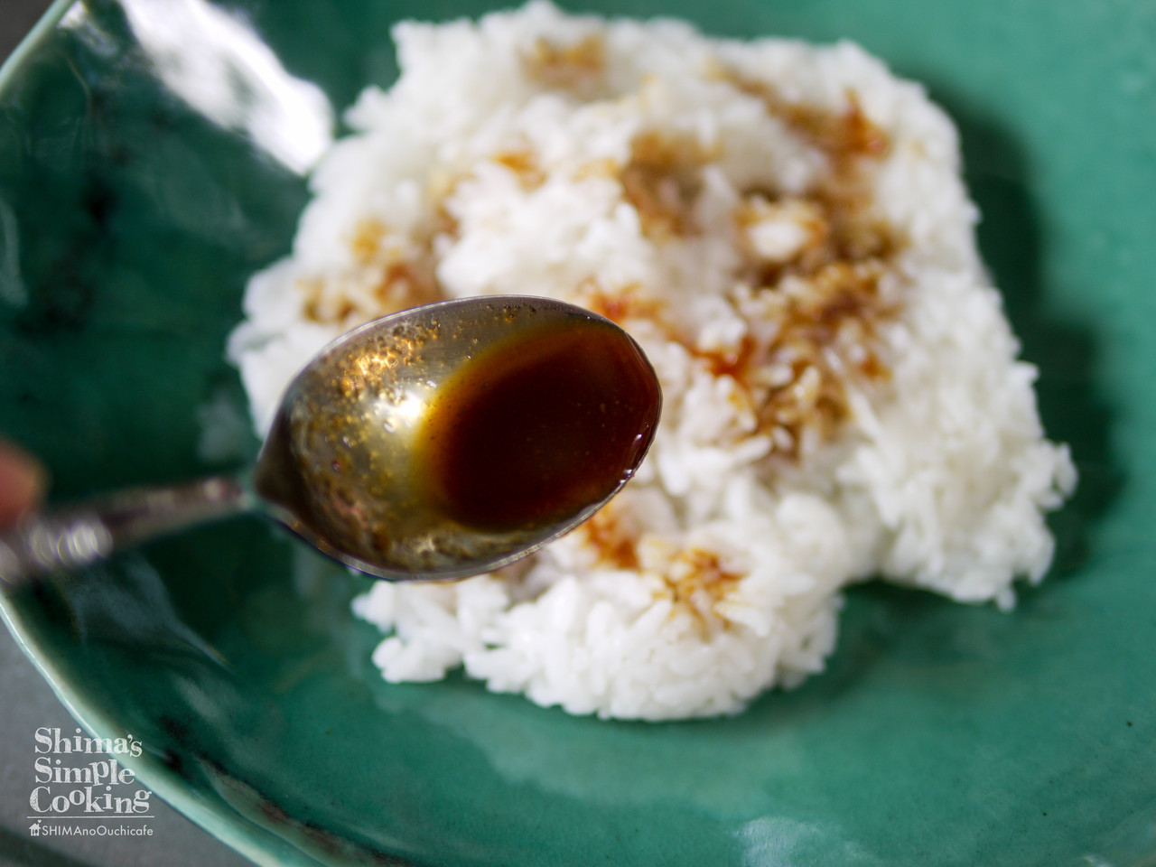 4、器にご飯を入れ、焼肉のたれを適量かけ、その上にネギと