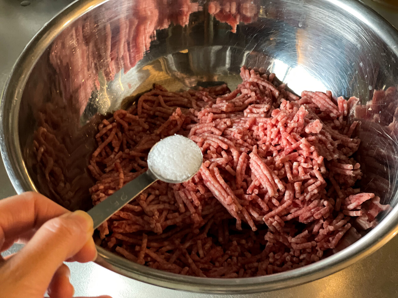 先に塩とお肉でこねて旨味を凝縮