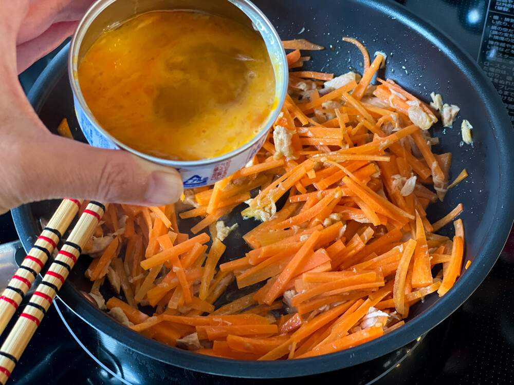 ツナの旨味に卵のまろやかさが絡んだ人参のハーモニー。