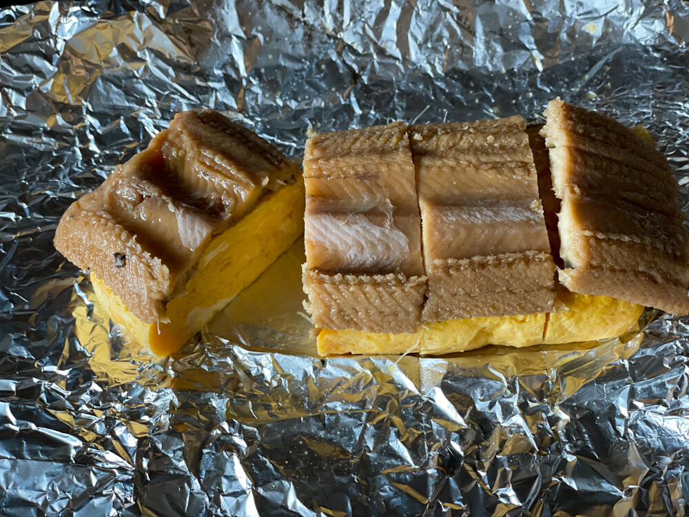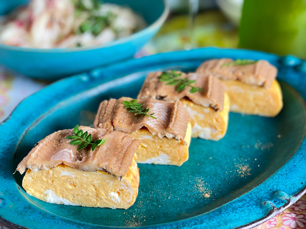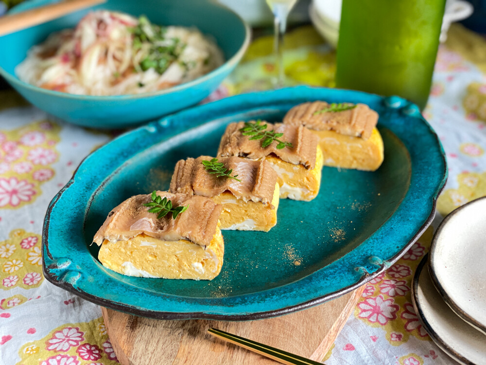 うまうまな出汁焼き卵の上に穴子トッピングな夏のおつまみ。