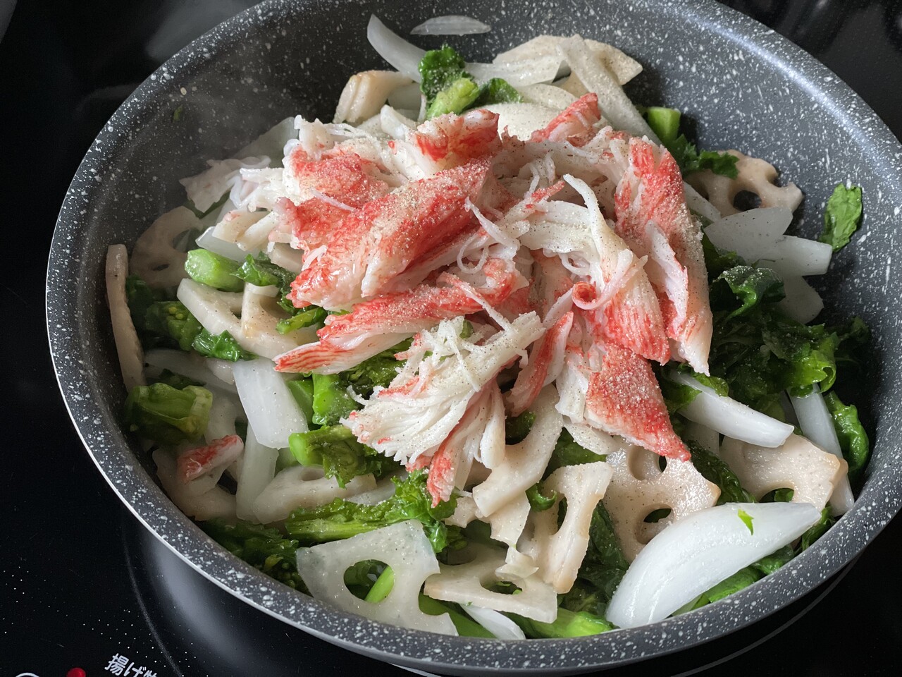 カニカマの旨味と甘さが菜の花とナイス相性でした。