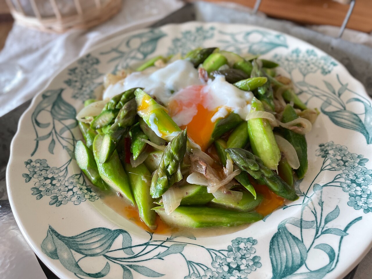 卵のトロトロがアスパラに絡んで春の幸せ味💓