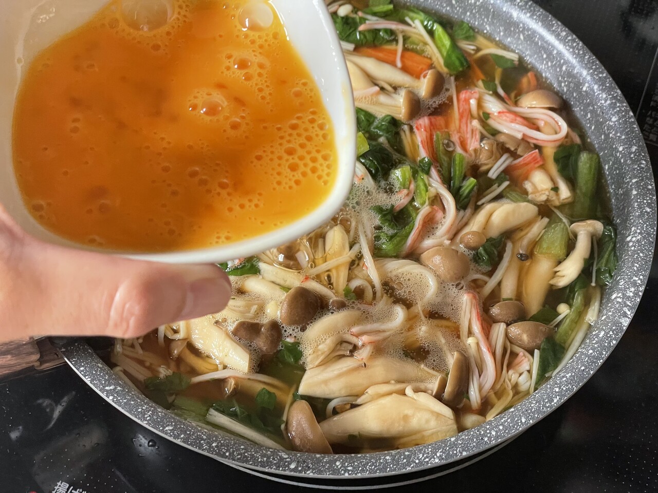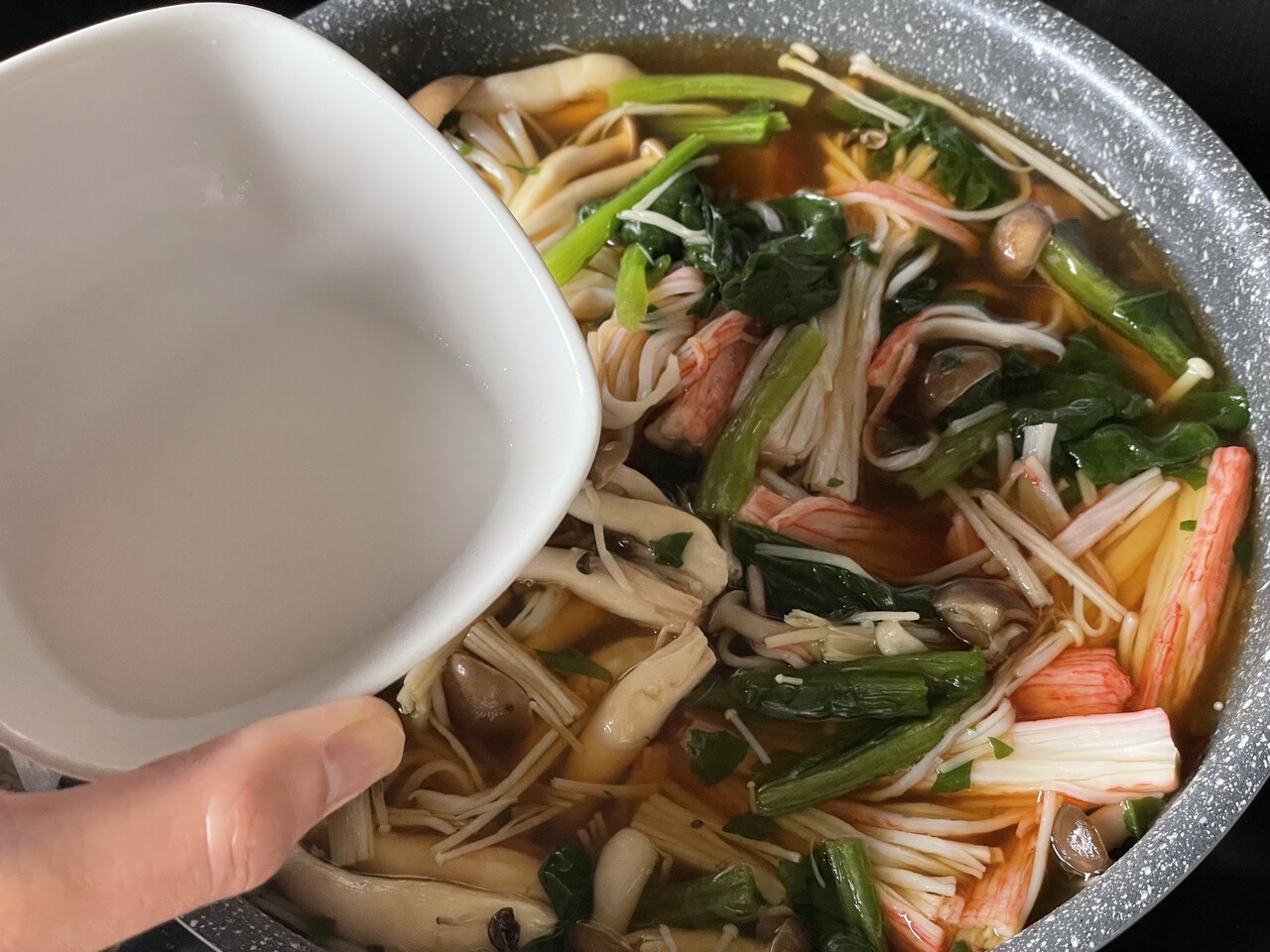 水溶き片栗粉を加えてとろみをつけます。