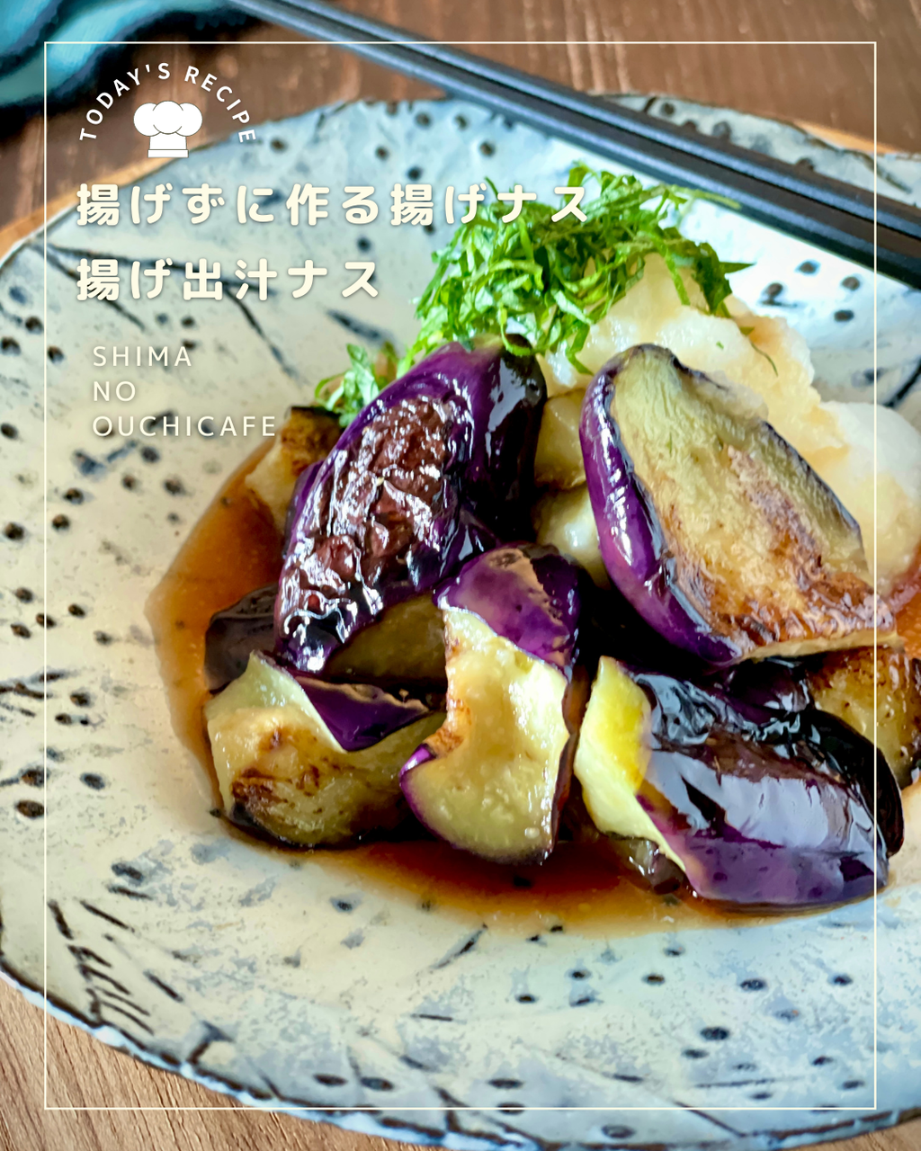 🍆揚げ出汁なすは大根おろしと大葉を添えて