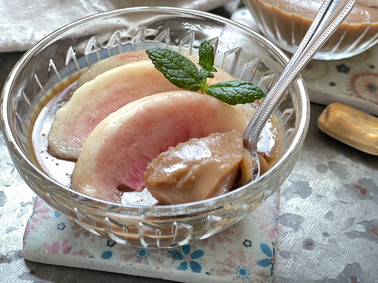 大好きな桃をトッピングしてみました。