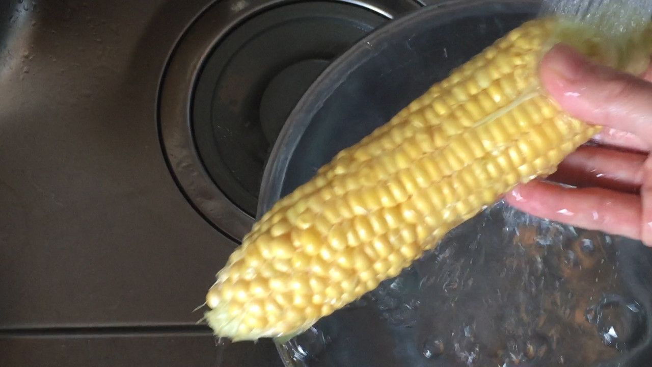 ①トウモロコシはさっと水で洗い塩(分量外)を少々ふってラップをし、