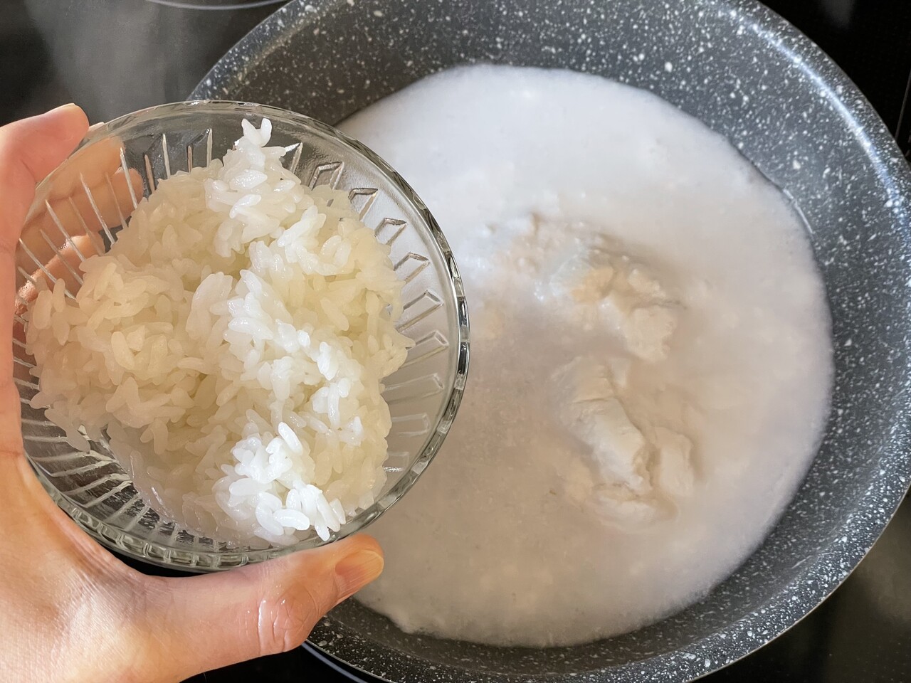 ご飯とお水と一緒に煮るだけ。