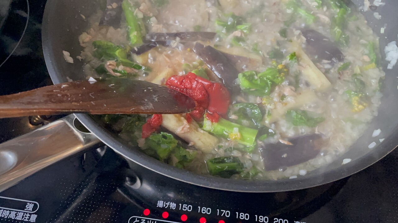 冷蔵庫にナス、菜の花←好きでまとめ買い