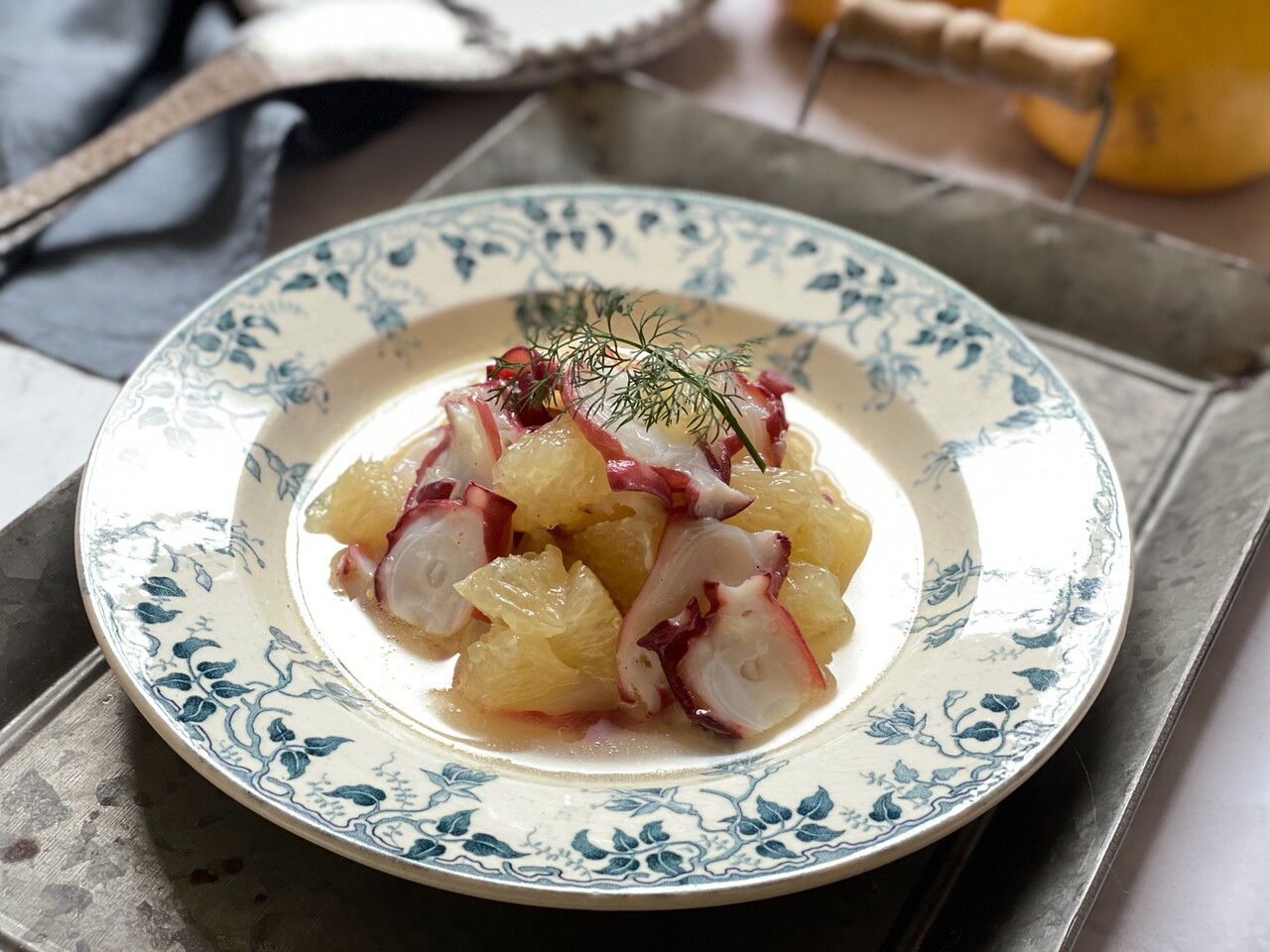 グレープフルーツとお酢の酸味でタコも柔らかく🐙