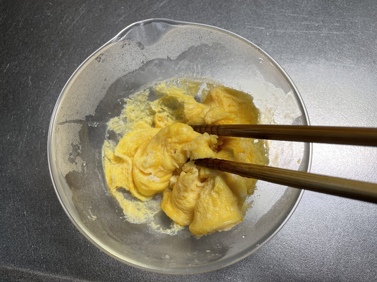 熱いうちにほぐして炒り卵に