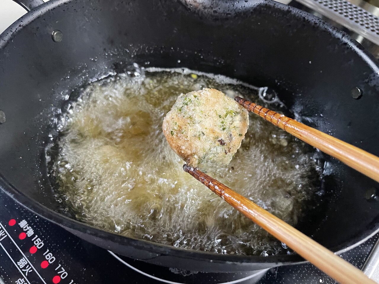 衣に片栗粉と青のりを入れて磯辺揚げ風です。