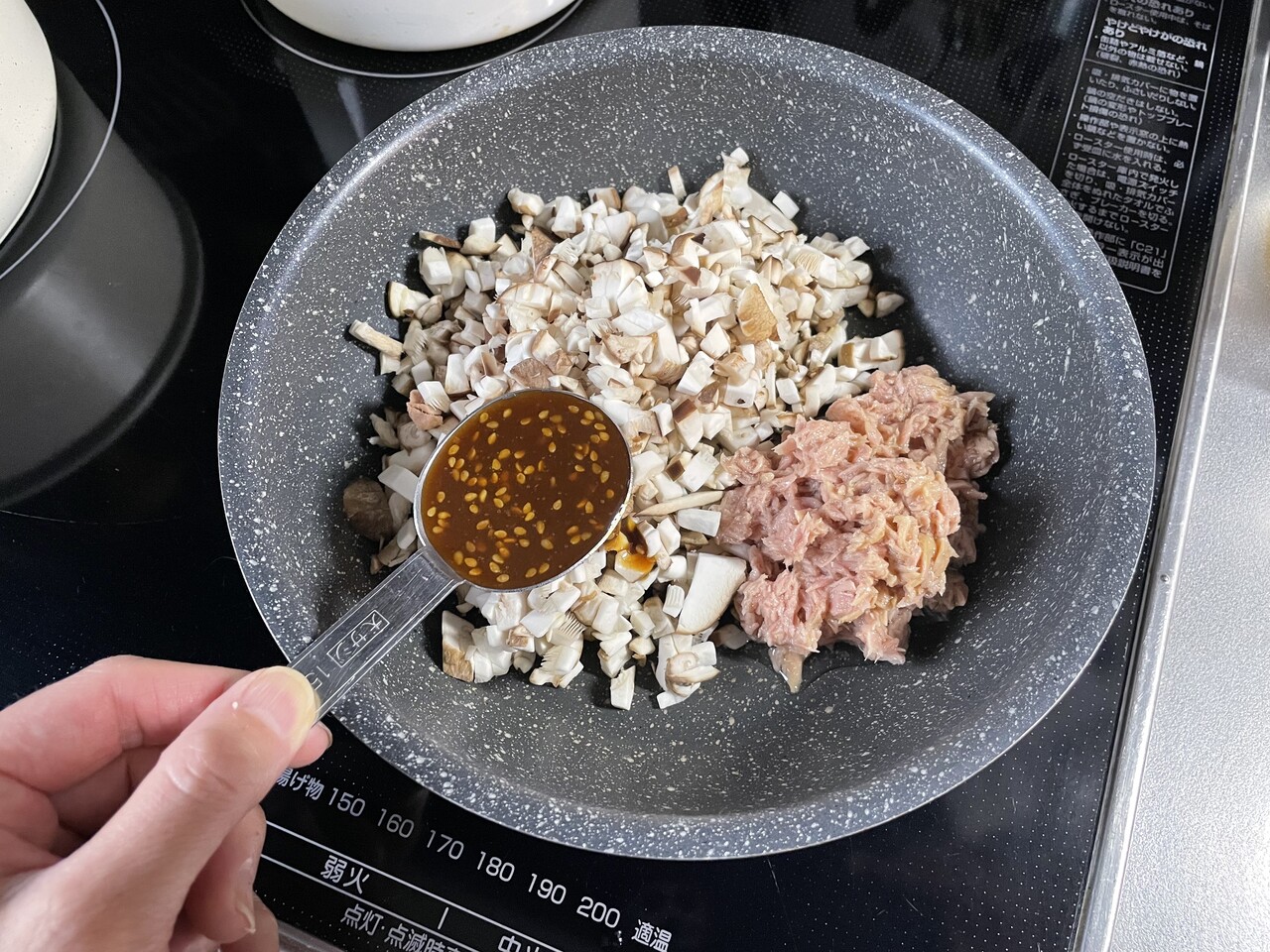 粗みじん切りにした椎茸とツナ缶を合わせて