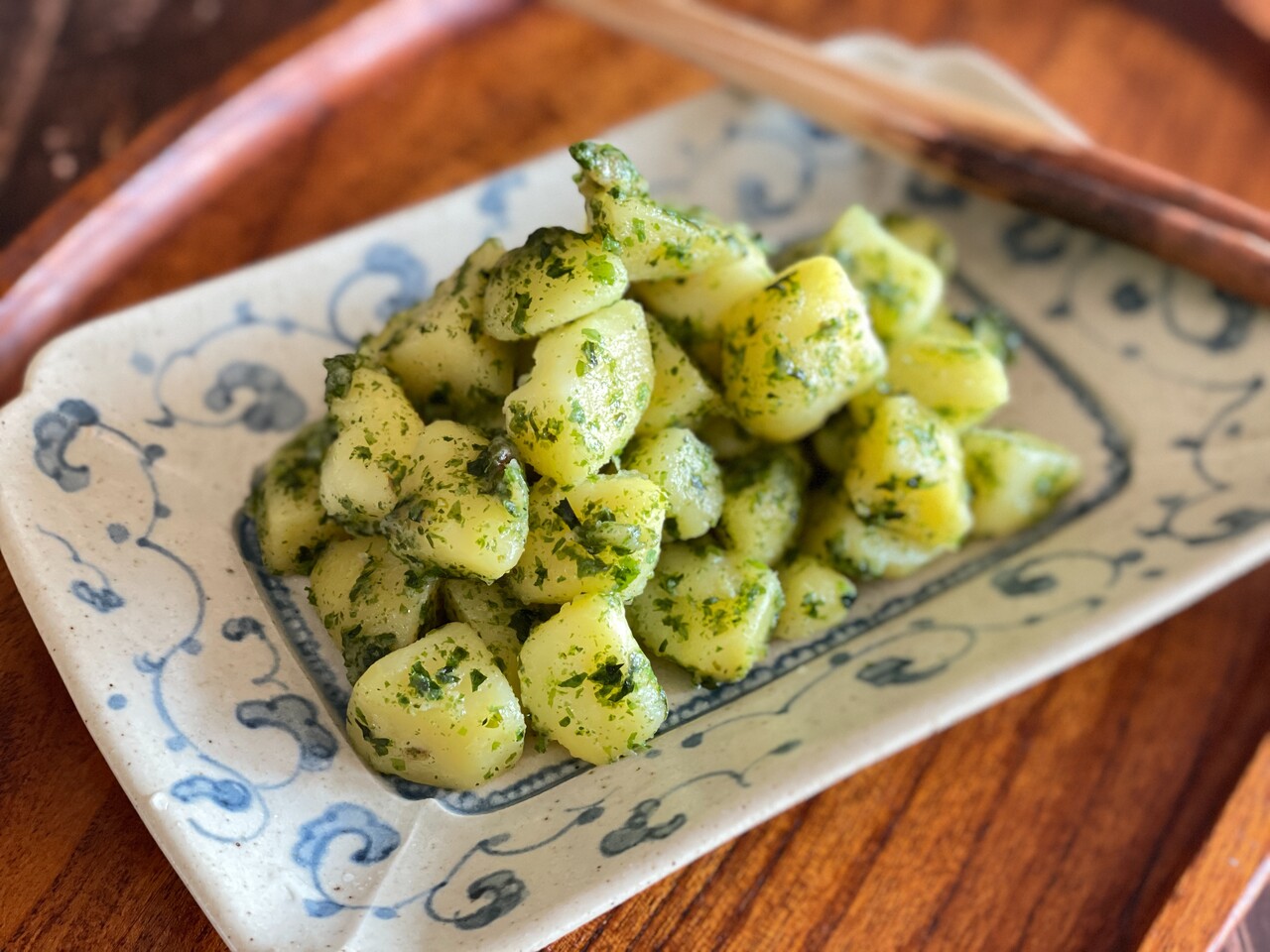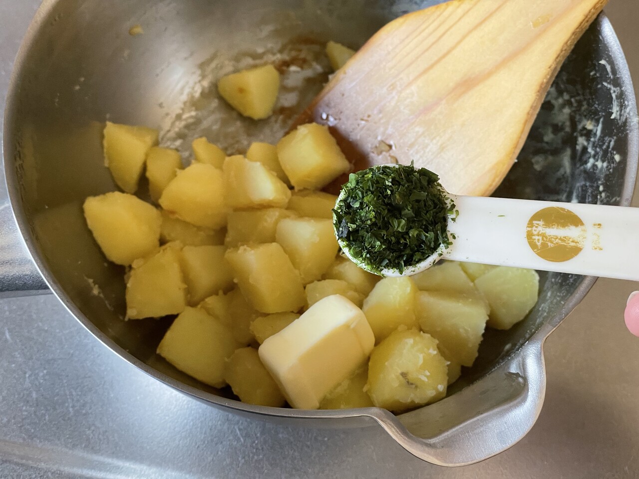 温かいうちに青のりとバターを加えて絡めるだけ!
