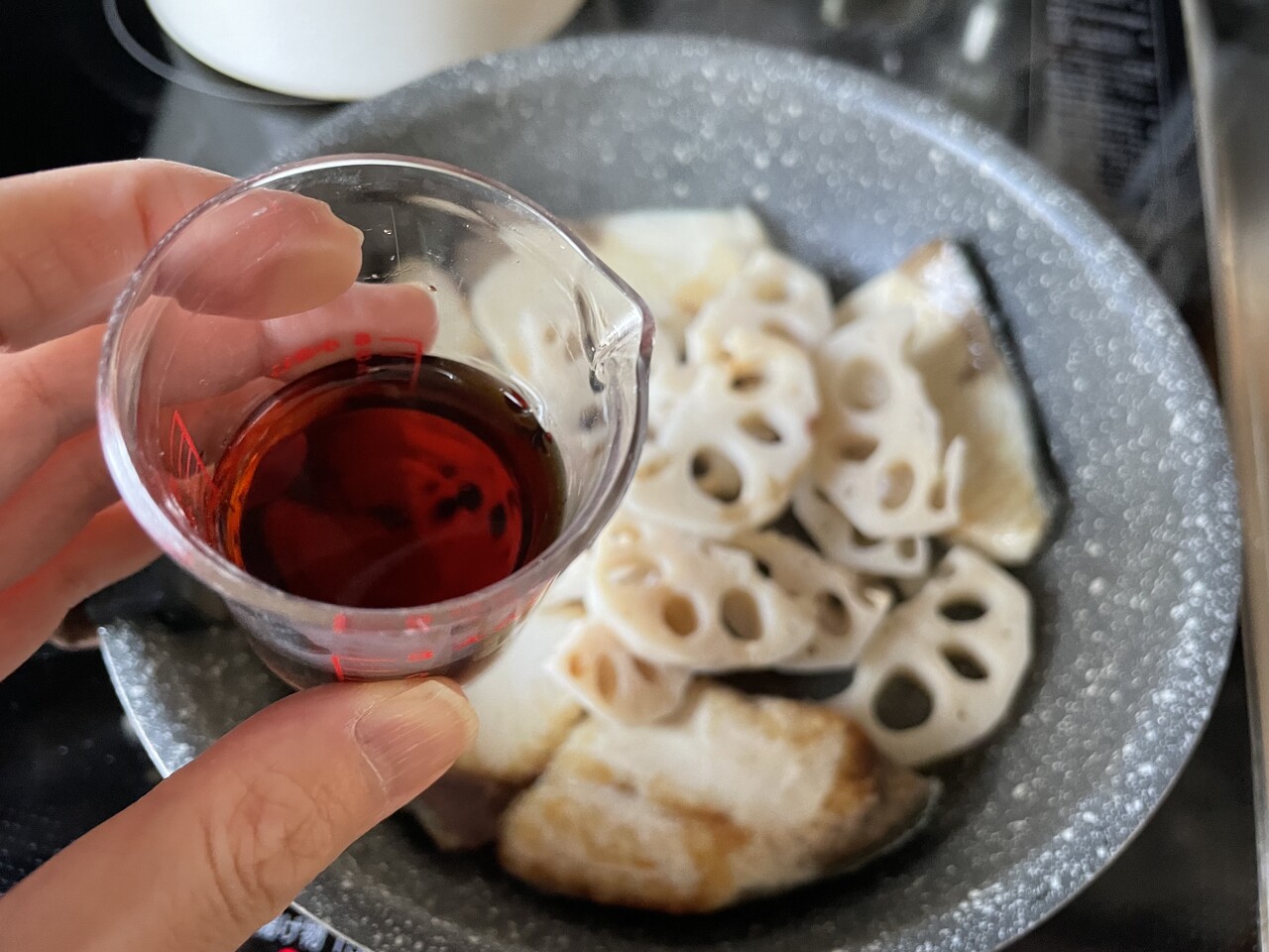 レンコンは下準備 電子レンジで軽く火を通して起きます。