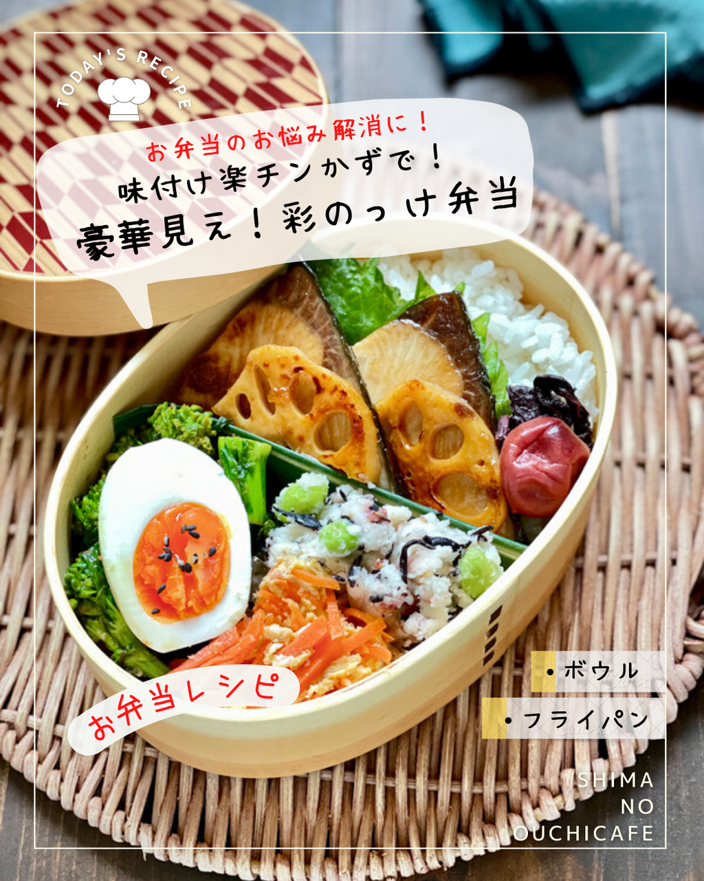 レンコンの照り焼きをぶりの照り焼きをのせました。