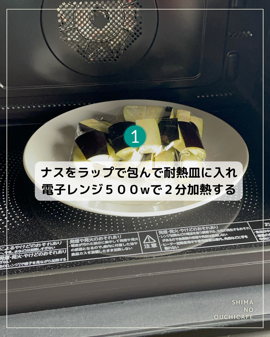 ナスの下拵えは電子レンジでラップで包んでチンすると