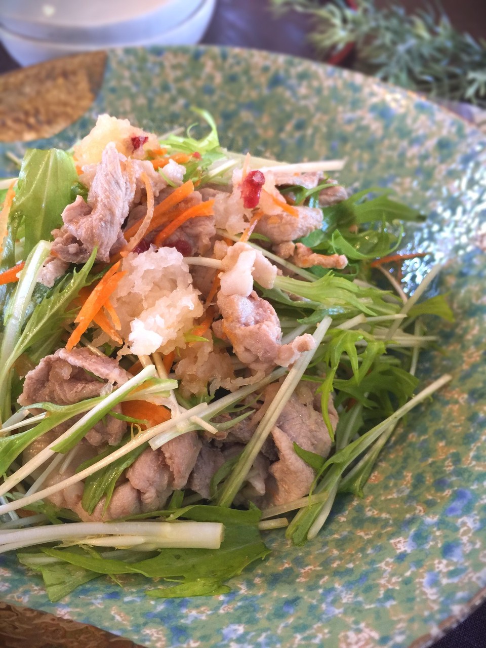 レシピ「簡単!シャキシャキ水菜のさっぱり豚しゃぶ梅おろし和え」を