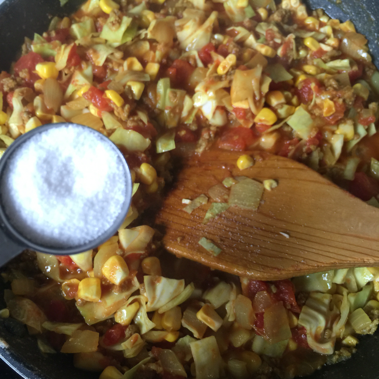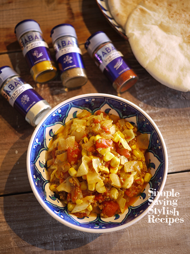 【トウモロコシとキャベツとひき肉のスパイスカレー】